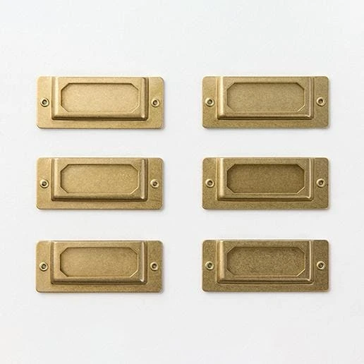Add a personal touch to your journals, notebooks and boxes with our brass label plates. Use them to identify your items by sewing or gluing them on, slip a label inside for clear identification.