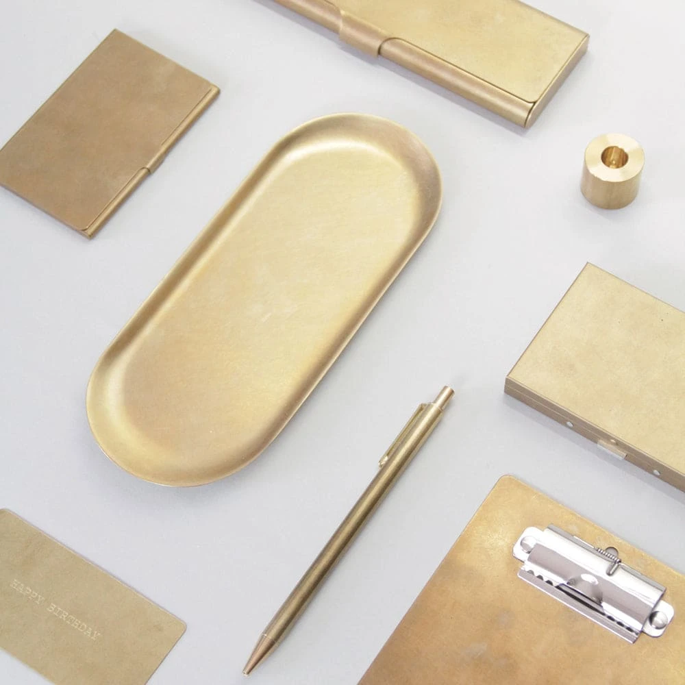 Manufactured in Japan, this brass pen stand has an organic appearance and texture that matures with use.