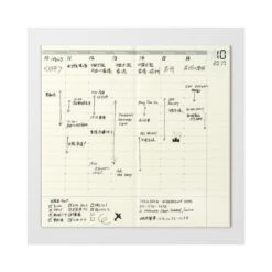 This is a plain notebook that is placed in the TRAVELER’S notebook. There’s nothing printed on the notebook so you can write, draw, paint, and paste things freely. Please think out of the box when using it! The MD paper is used for this notebook so the feeling when writing is simply great.